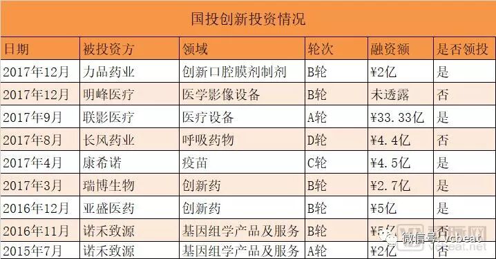 第三类投资机构代表包括中国医药投资公司发起的国药资本、中科院控股发起的国科嘉和、国投集团发起的国投创新、国投创业等。