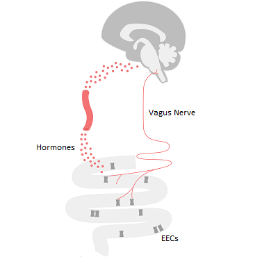 Kallyope创立于2015年,成立2年时间内即融资高达1.1亿美元,备受投资者青睐。Kallyope专注于肠-脑轴研究,即胃肠道和大脑之间的双向信号沟通网络,这通过循环中的多肽、代谢产物,免疫因子,激素和神经信号环路实现发生。其关键组成部分包括高度分化的分泌性肠细胞释放激素(肠内分泌细胞,EECs),自主神经系统(迷走神经,肠神经系统)和中枢神经系统,以及肠道微生物组。这些系统以高度协调的方式协同工作,来调节生理和行为活动,并在食欲调节和能量平衡中起重要作用。