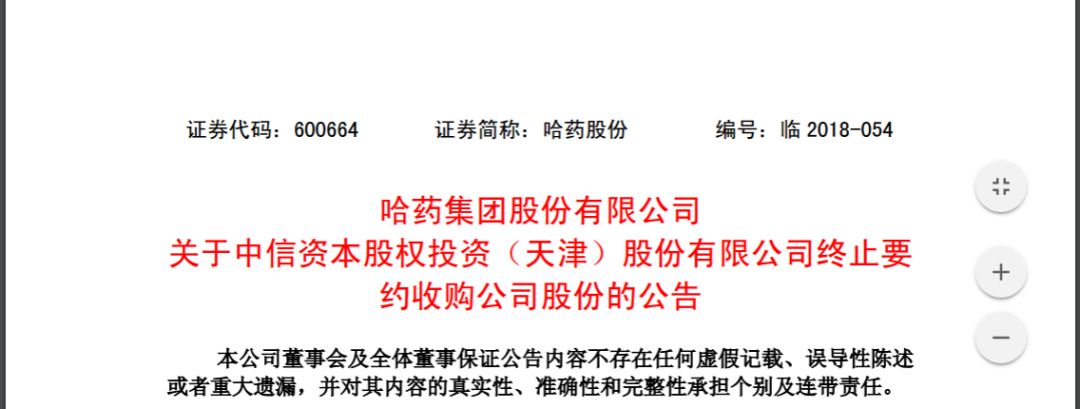 6月20日,哈尔滨市国资委出具《关于终止本次哈药集团增资扩股有关事宜的通知》,具体内容如下: