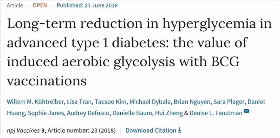 [3] Long-term reduction in hyperglycemia in advanced type 1 diabetes: the value of induced aerobic glycolysis with BCG vaccinations
