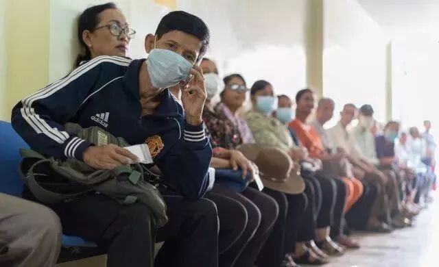 在整个柬埔寨,预计有30万至75万丙肝病人。人们在无国界医生的丙肝诊所等候。