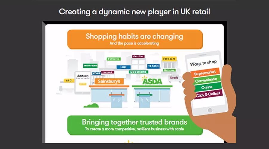 03 英国超市连锁企业英佰瑞(J Sainsbury PLC,也称桑斯博里)同意与沃尔玛(WalMart Inc.)旗下英国运营子公司Asda Group Ltd.合并,由此建立起一个规模更大的业务,按照2017年数据计算,两者合并收入达到510亿英镑(约合689亿美元)。沃尔玛将持有合并后公司42%的股权,作为交易的一部分,沃尔玛将获得29.8亿英镑。该交易对Asda的估值约为73亿英镑。Sainsbury和Asda品牌都将保留。