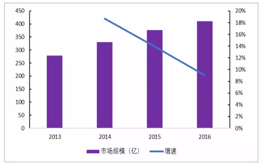 据公开资料显示,我国糖尿病公立医疗机构市场销售规模由2013年的278亿扩容到2016年的410亿,复合增速达13.8%,叠加零售药店终端销售,2016年国内糖尿病整体市场规模近500亿元。
