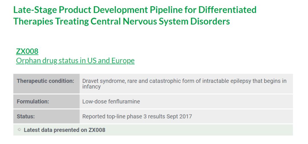 ▲ZX008是Zogenix的主要在研产品(图片来源:Zogenix官方网站)