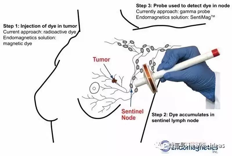 Sentimag系统通过磁性检测,由Endomagnetics Inc公司申请,能够帮助医生和肿瘤专科在前哨淋巴结活检中发现特定的前哨淋巴结,用于手术切除。