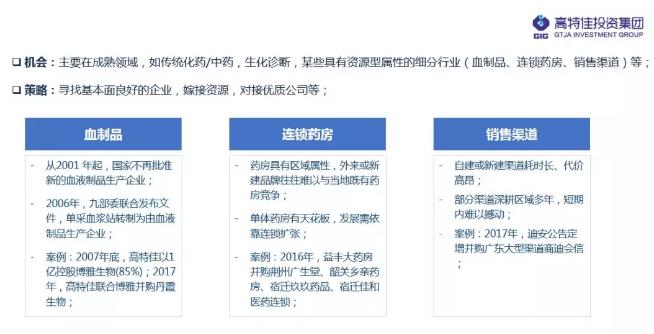 最后一部分就是简单介绍高特佳投资集团。公司2001年深圳成立,在2012年之前是全行业投资在2012年随着博雅的上市,公司聚焦在医疗健康板块,因为聚焦专注所以在整个医疗健康领域覆盖了从天使到VC到PE并购全阶段的投资。目前已投资的医疗健康企业70多家,我们管理的资产规模200多亿,目前依然是博雅生物(300294)控股大股东,同时公司在上海、北京、南京建立了业务总部来进行项目端以及资金端的覆盖。